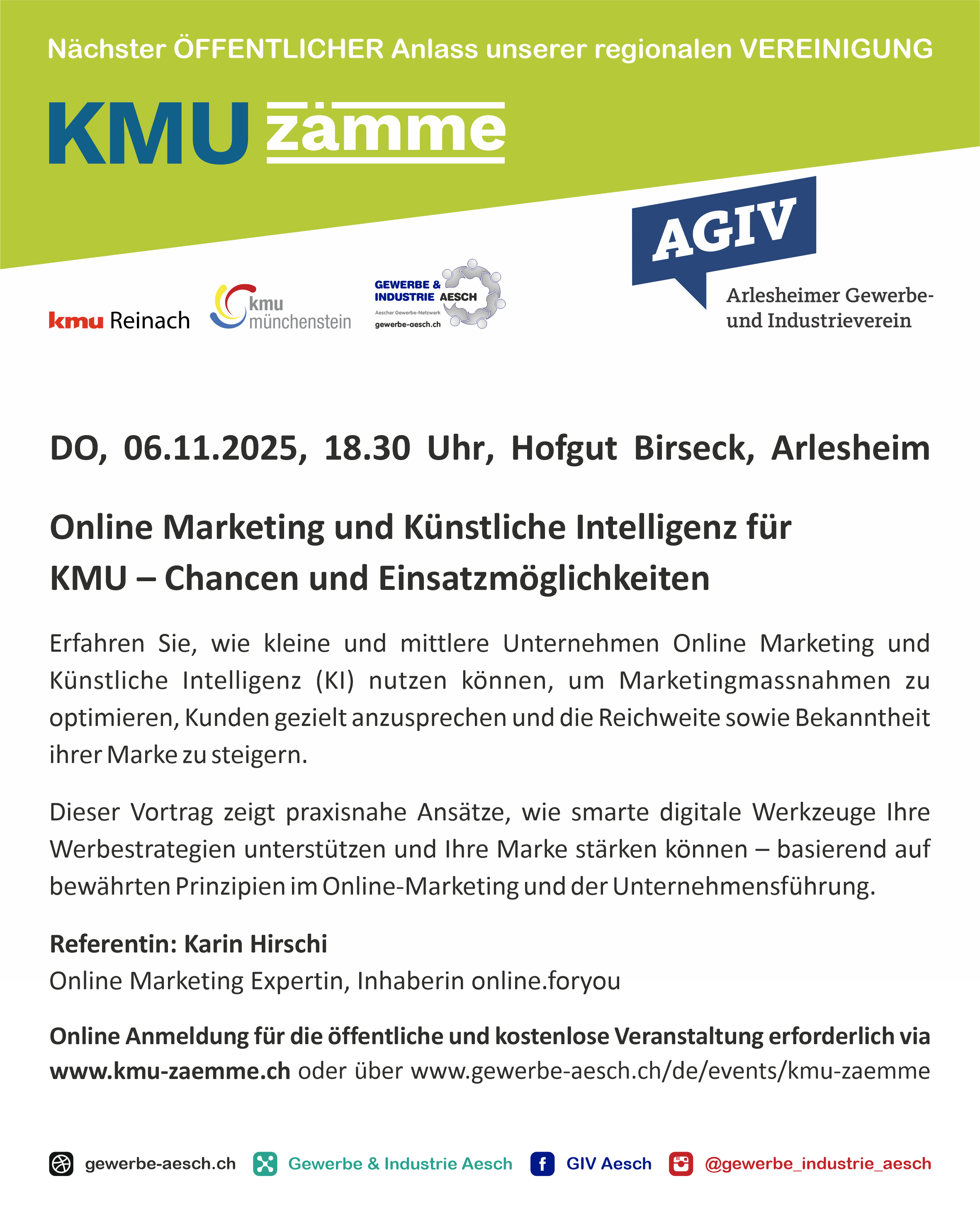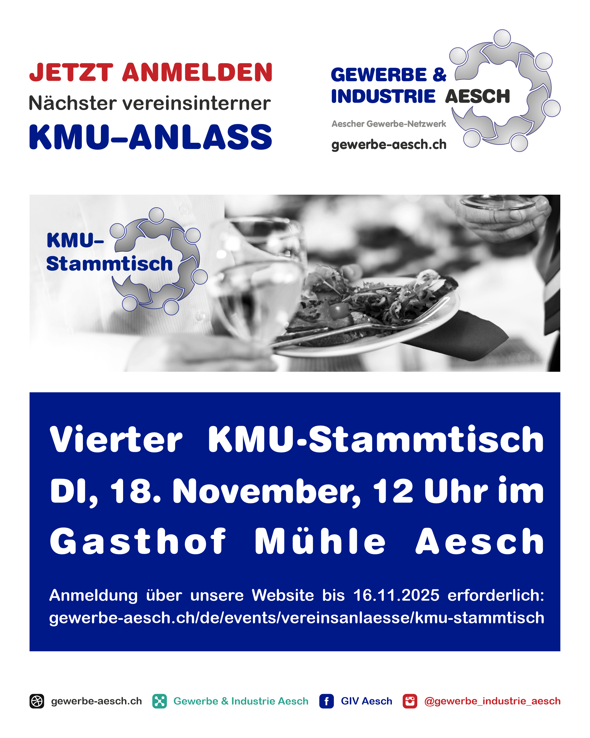 Als lokaler Gewerbe- und Industrieverein Aesch bleiben wir im Dialog und setzen uns für eine gute Lösung für die lokale Wirtschaft ein!
