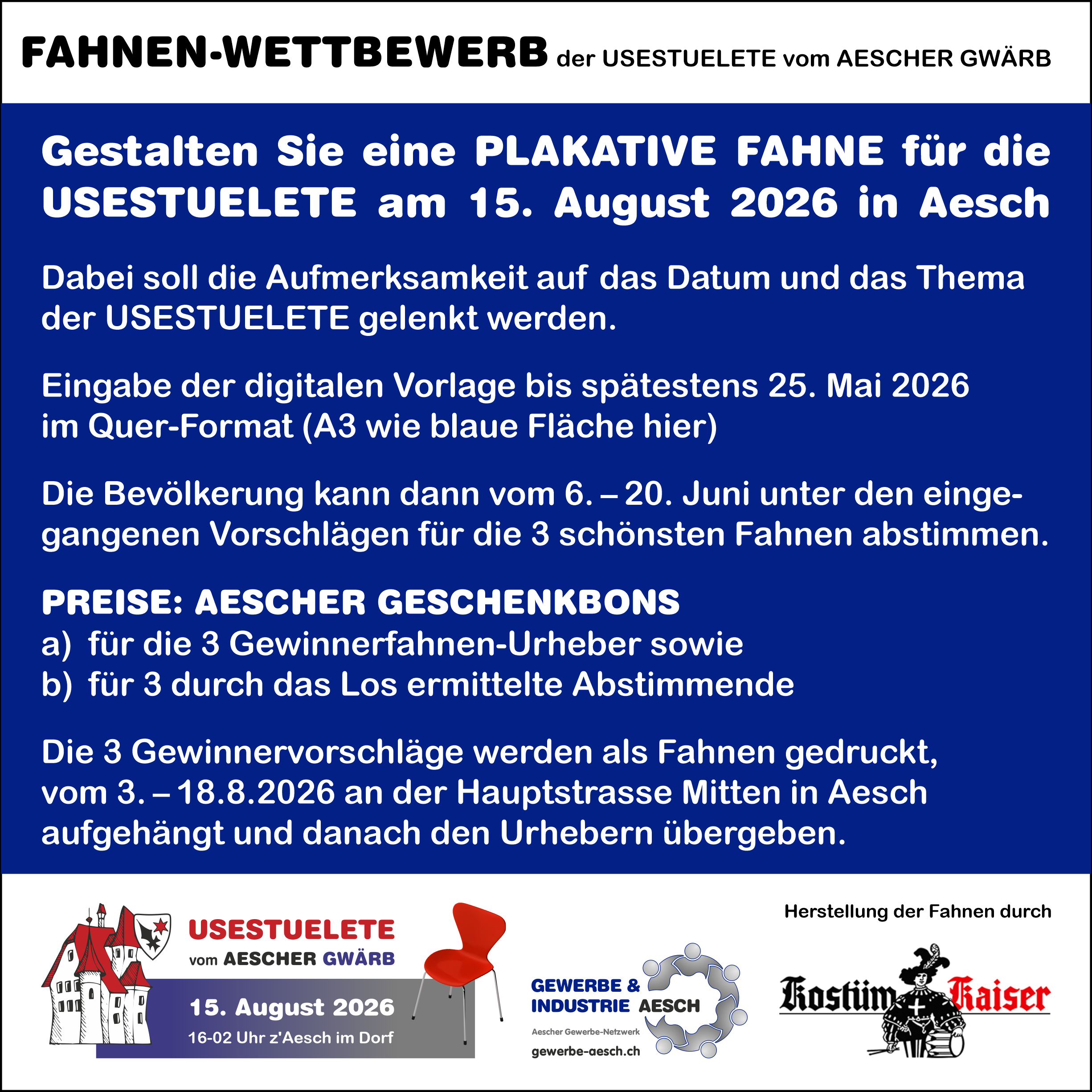 Die besten drei Fahnenvorschläge werden