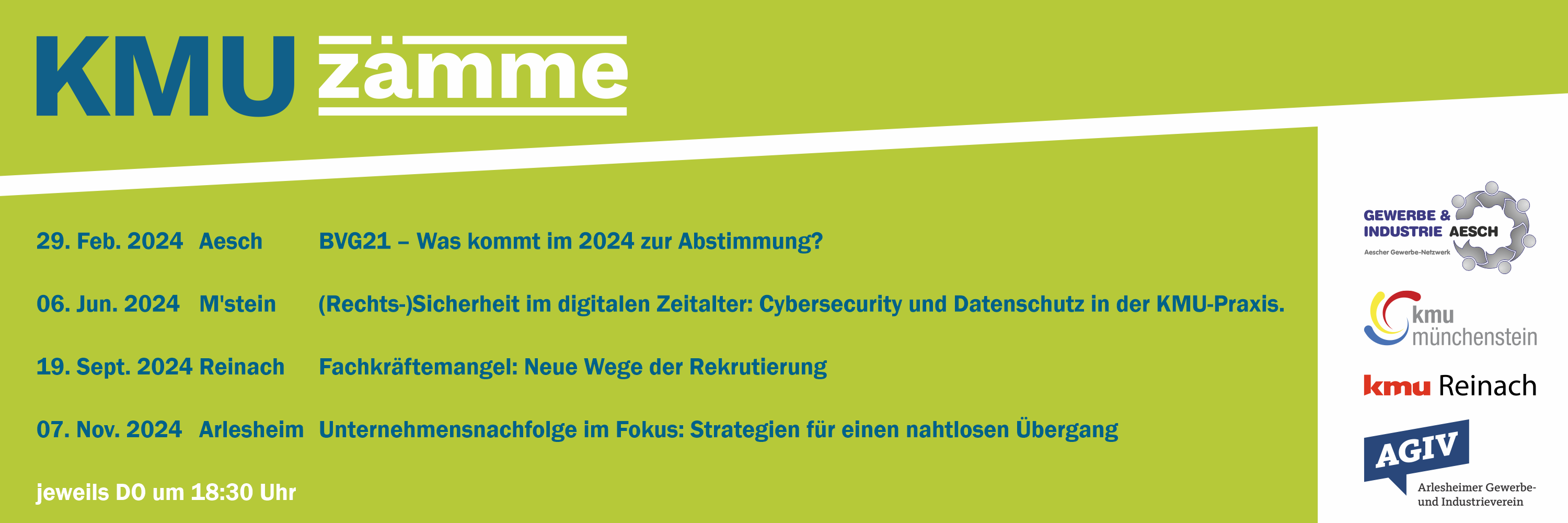 KMU zämme ist das neue gemeinsame Format der vier KMU-Vereine Aesch, Arlesheim, Münchenstein und Reinach,