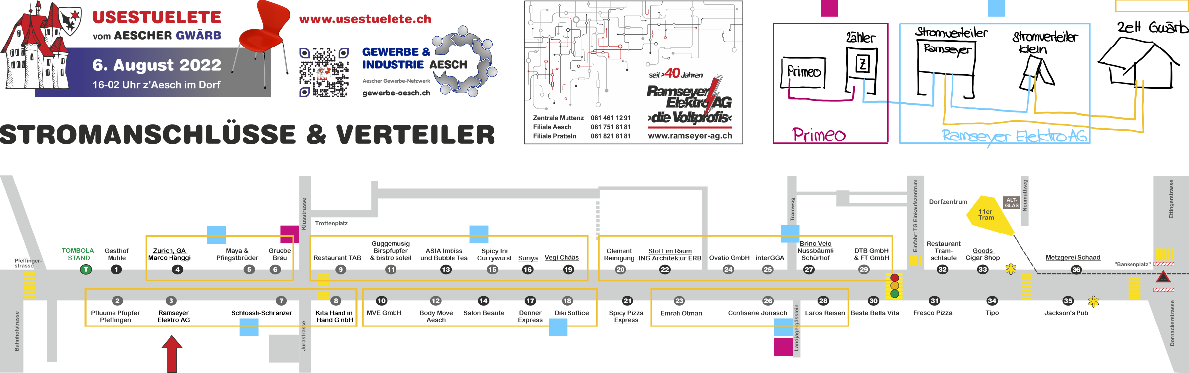 Unser Vereinsmitglied und Aussteller: Ramseyer Elektro AG wird uns damit versorgen und ist für für elektrospezifische Rückfragen zuständig. Der Verteilplan ist als PDF abrufbar.